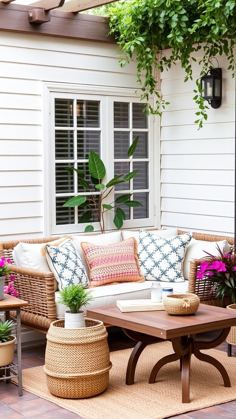 Transform your outdoor space into a beach retreat with a palette of soft blues, whites, and sandy neutrals. Incorporate textures like woven wicker and soft cotton to evoke that coastal vibe.